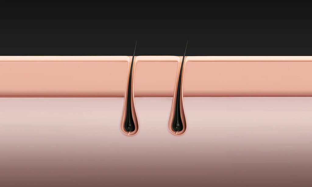 01. The light passes through the skin’s surface and is absorbed by the melanin in the hair follicle.